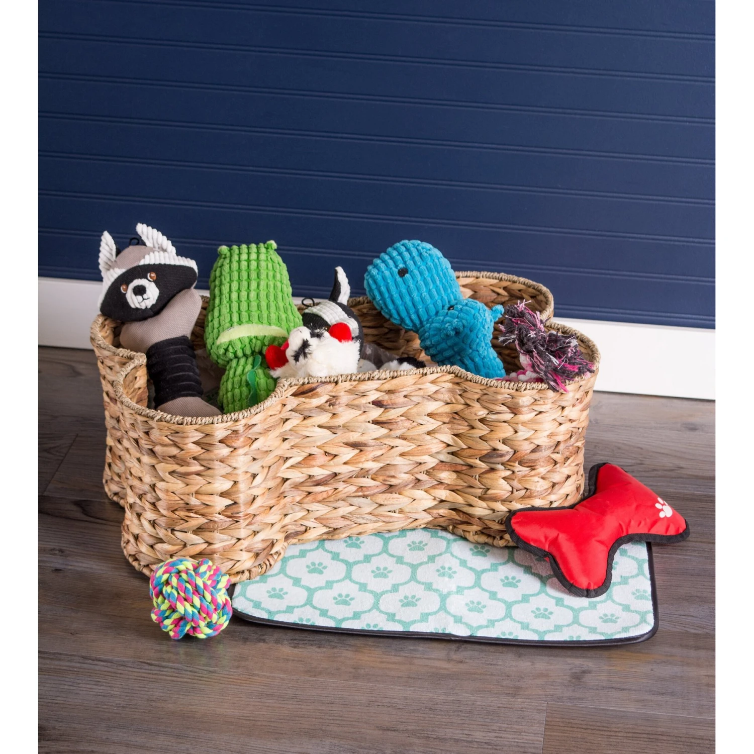 - The paw-fect storage bin for toys, leashes, collars and even treats.