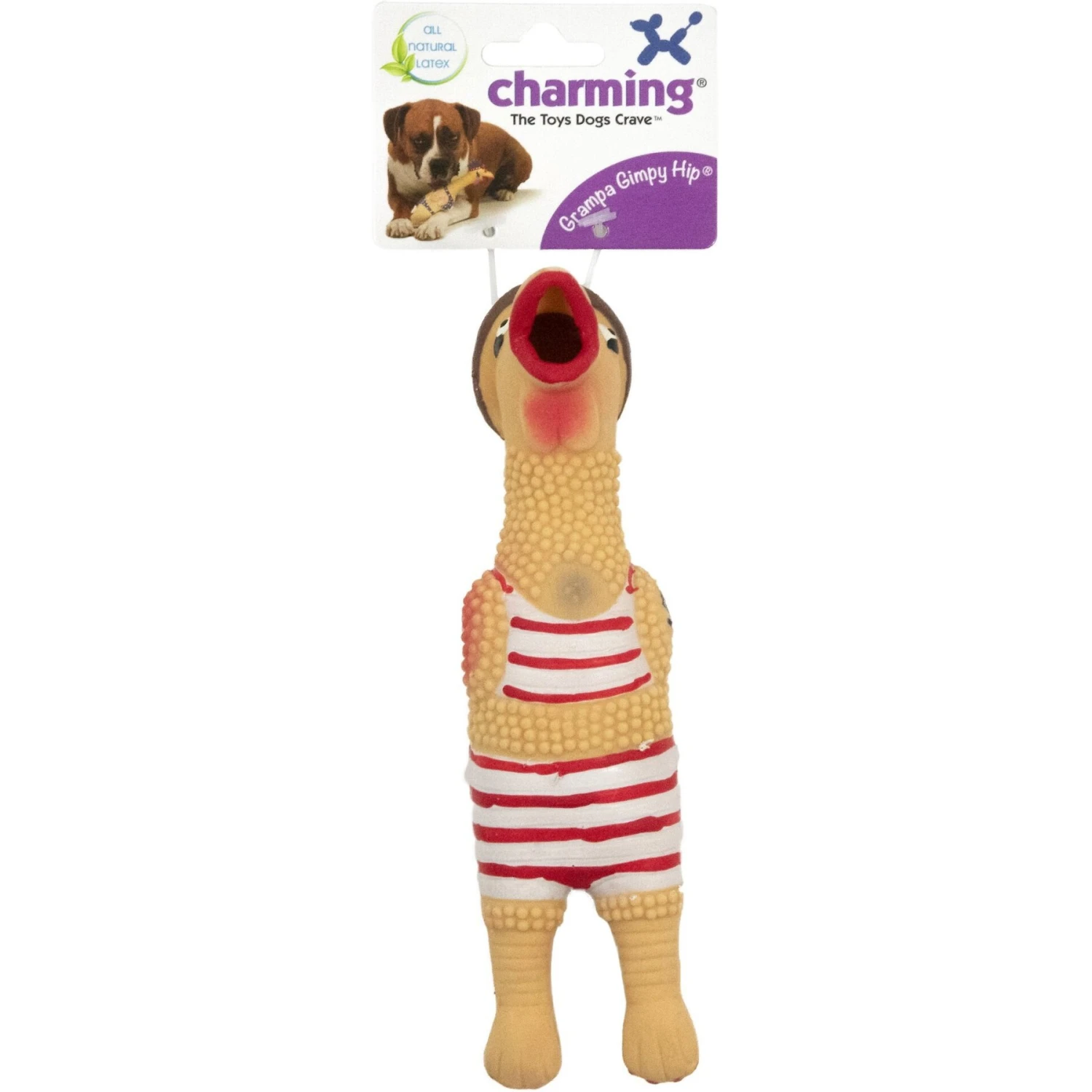 Charming Pet Squawkers Grandpa Gimpy Hip Squeaky Latex Dog Toy