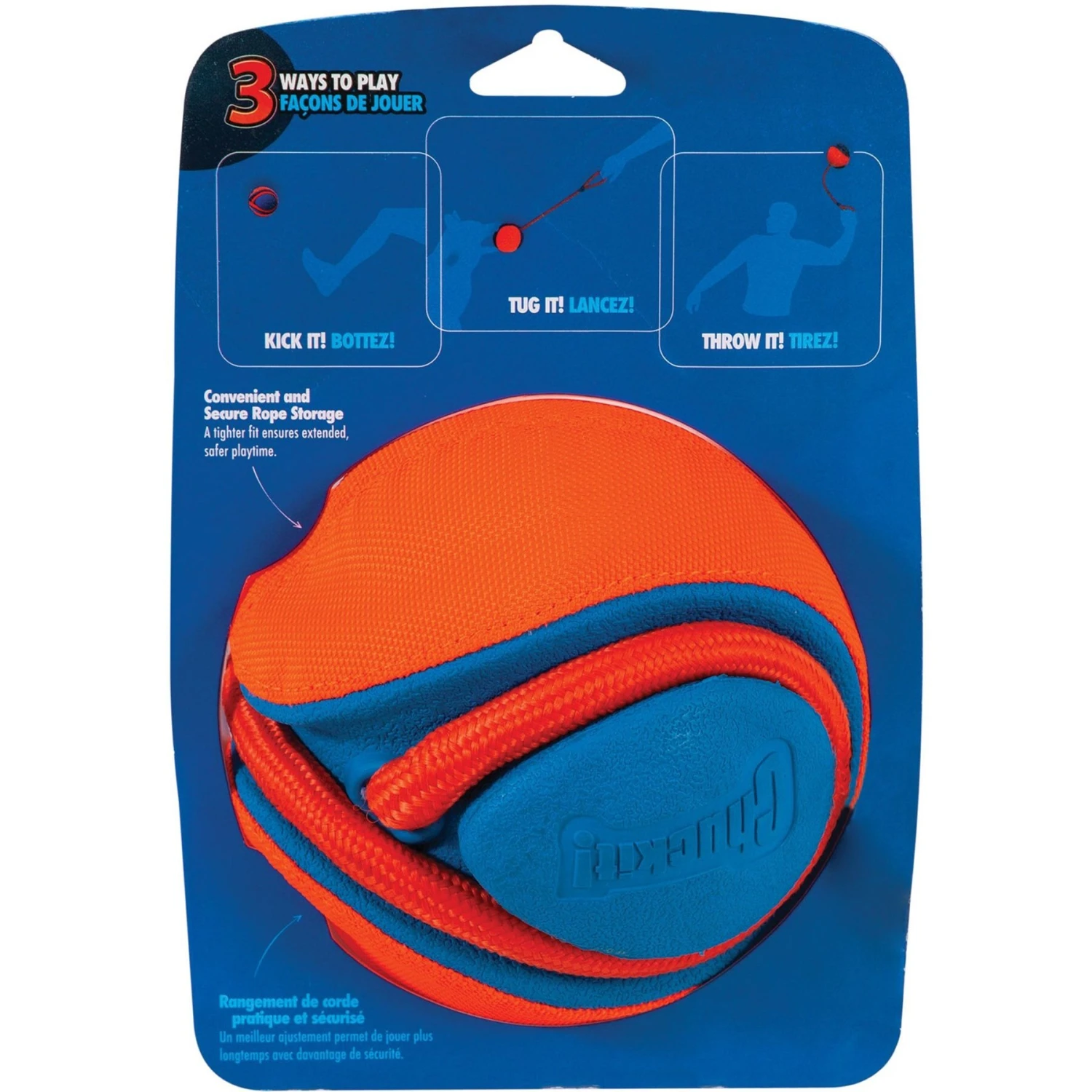 - The built-in handle allows you to transform the toy from a ball to a tug toy.