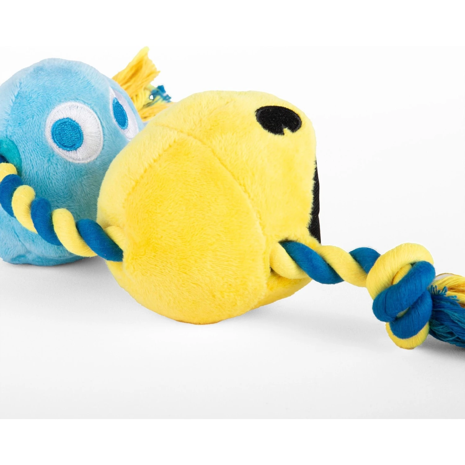 - Made with sturdy rope and plush components that squeak and slide.