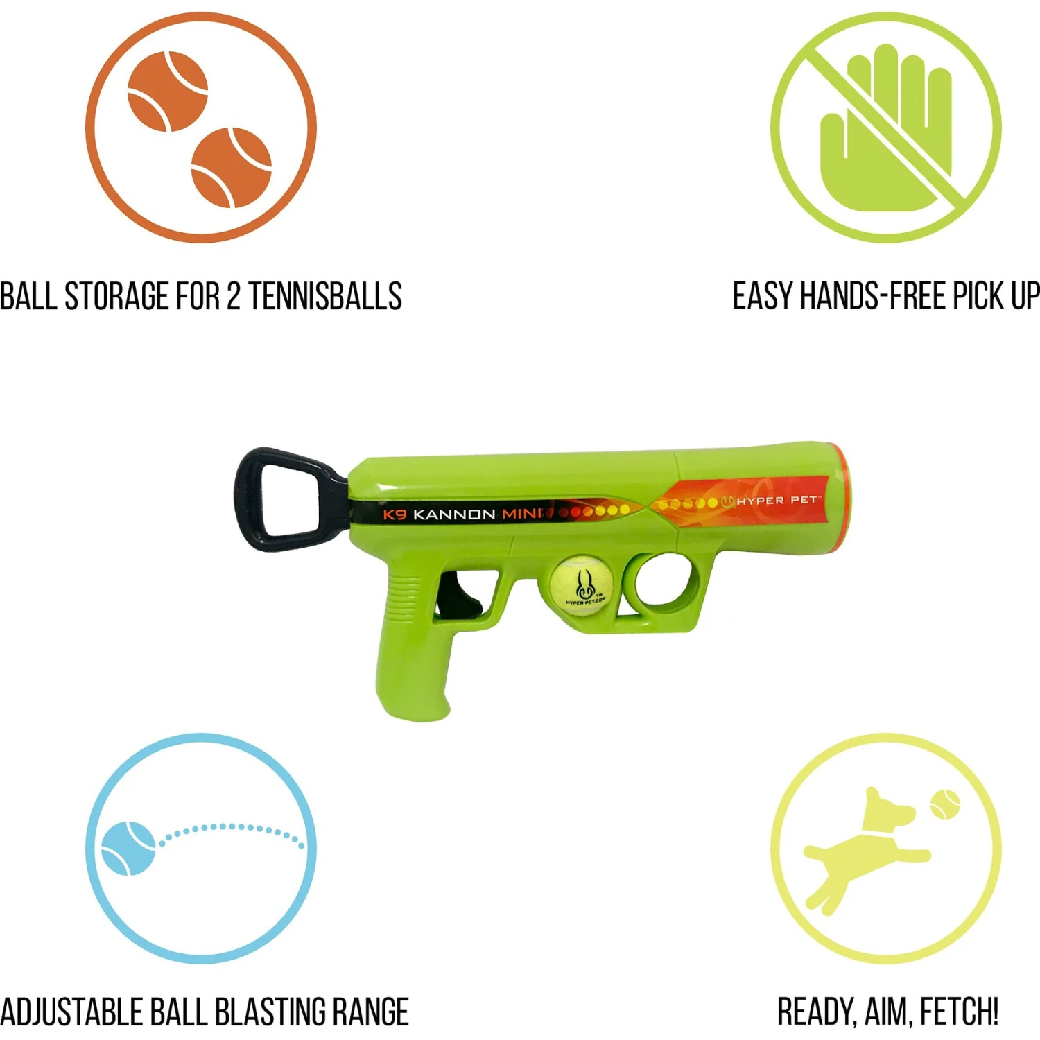 - Hands-free operation lets you pick up retrieved balls without getting your hands slimy by simply pressing them into the barrel of the launcher.