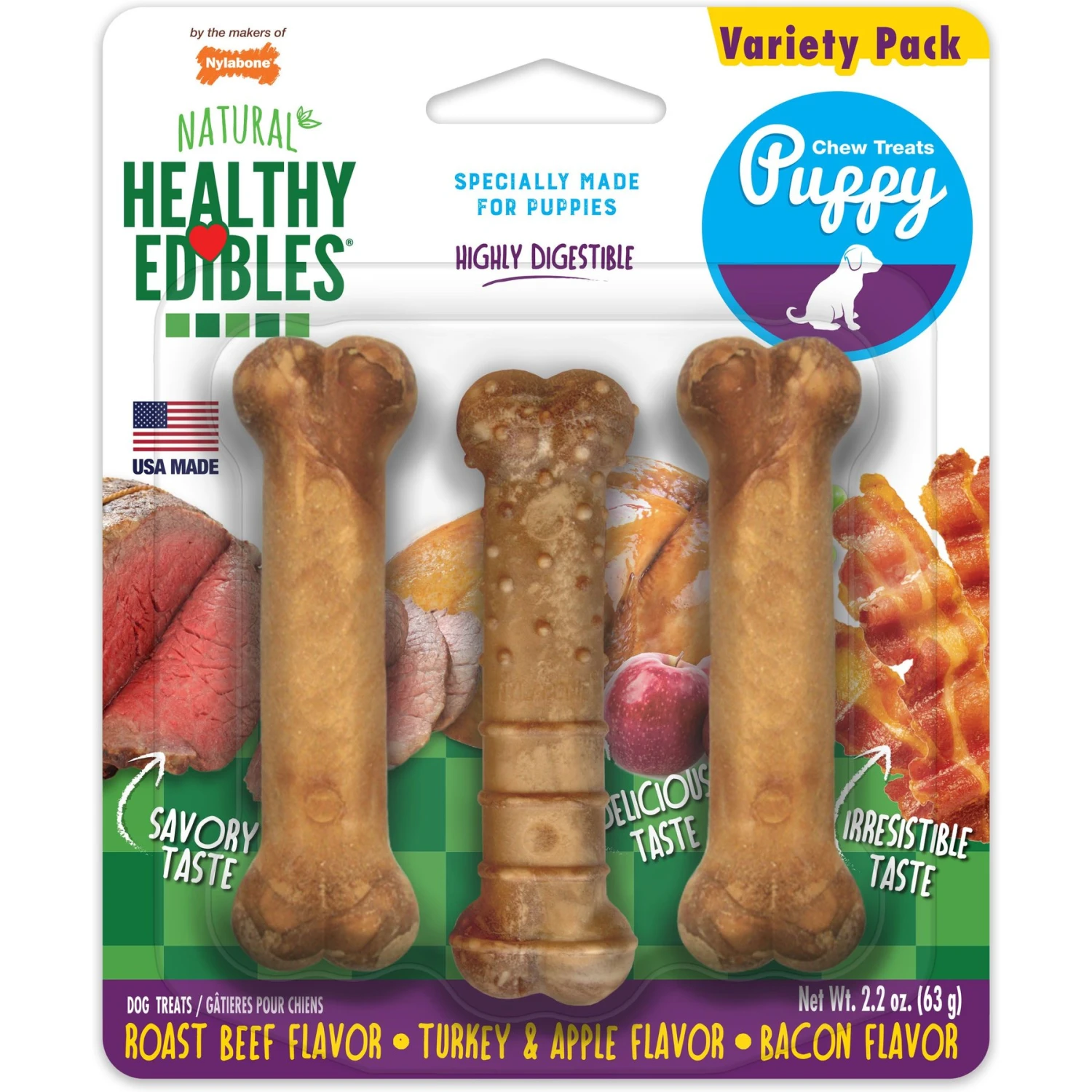 N-Bone Puppy Teething Sticks Chicken Flavor Dog Treats & Nylabone Healthy Edibles Bacon, Roast Beef, & Turkey Puppy Starter Kit Dog Treats