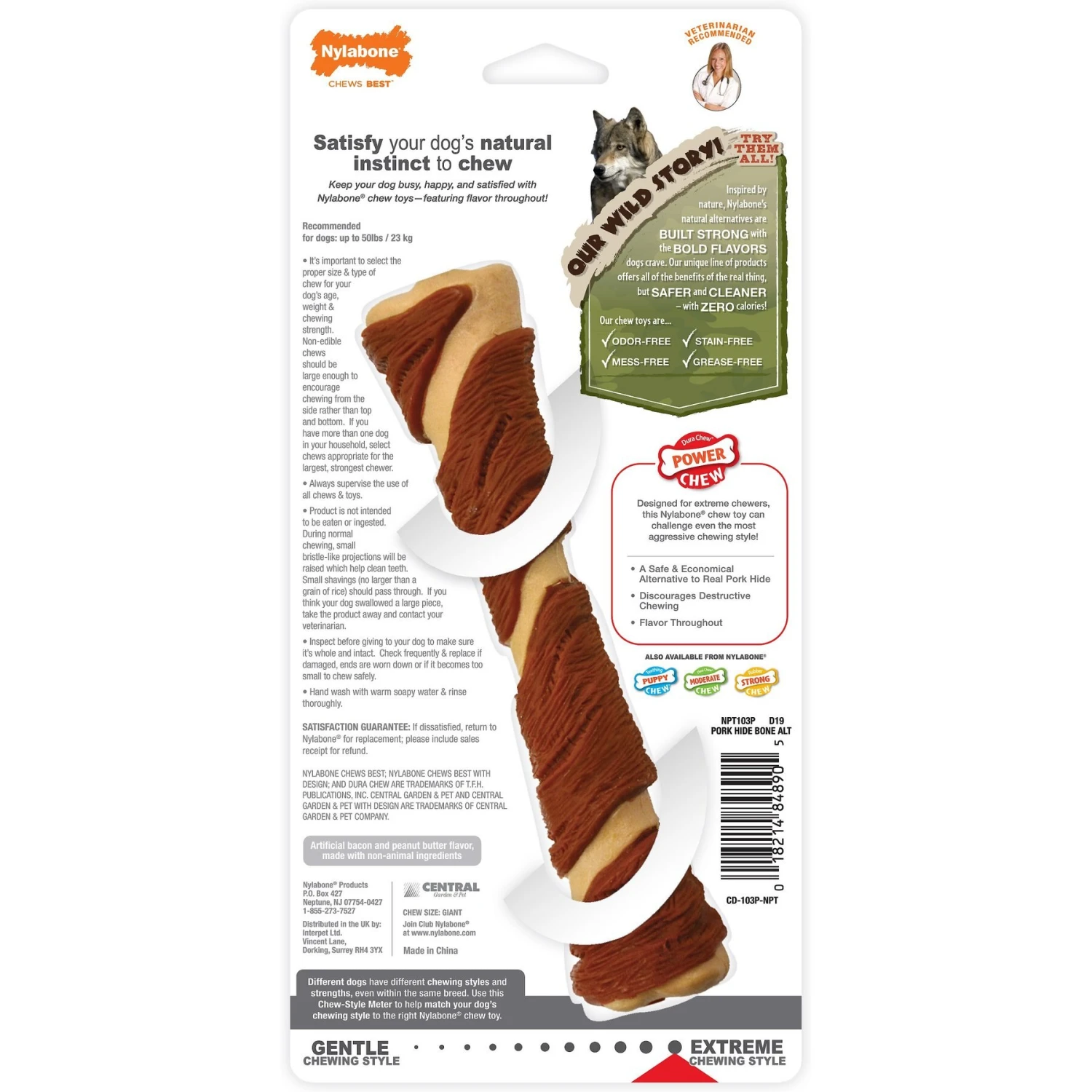 Nylabone Power Chew Alternative Pork Hide Bone Dog Chew Toy