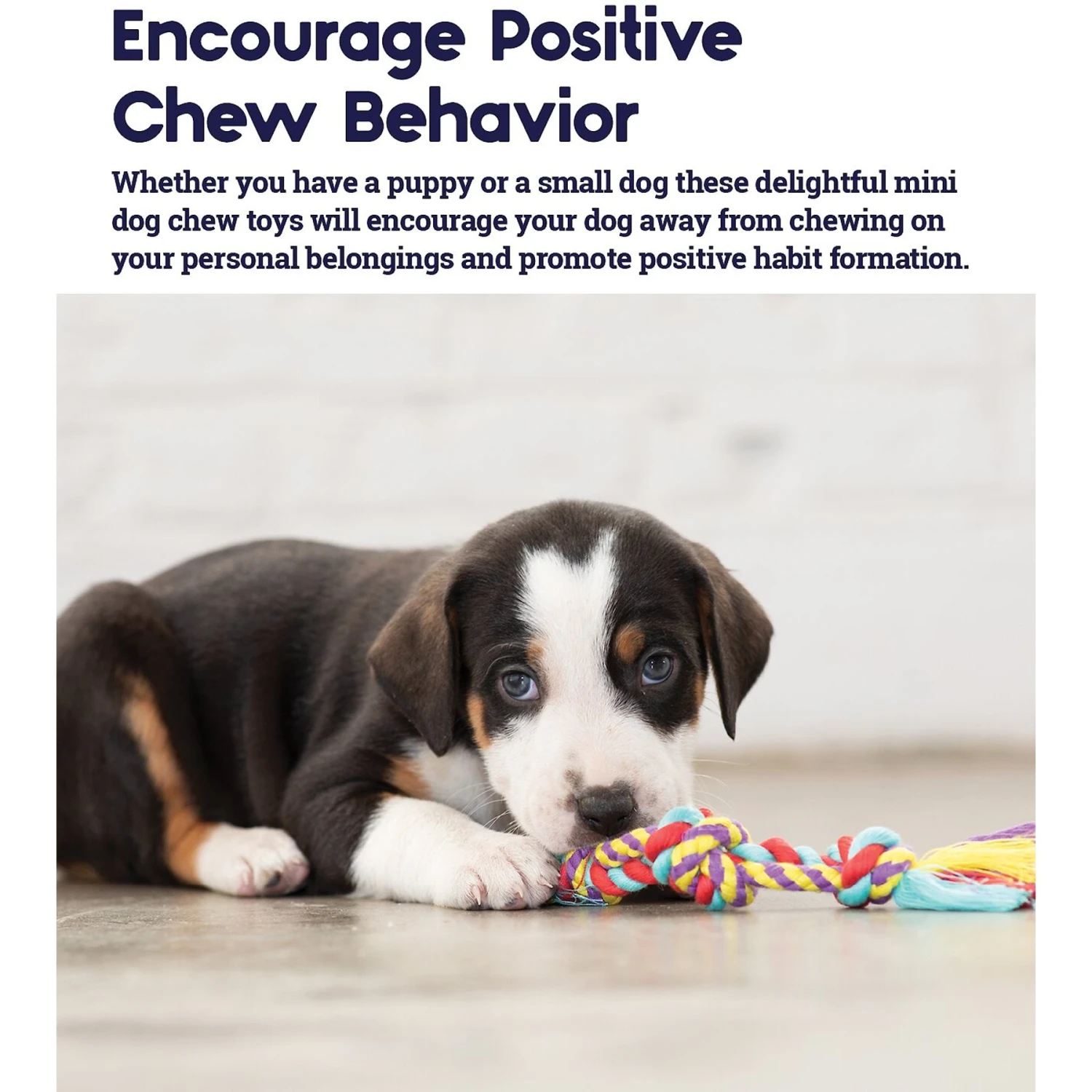 - Each uniquely designed toy helps to exercise your pup’s tiny jaw muscles—from flat edges to curved corners and braided ropes.