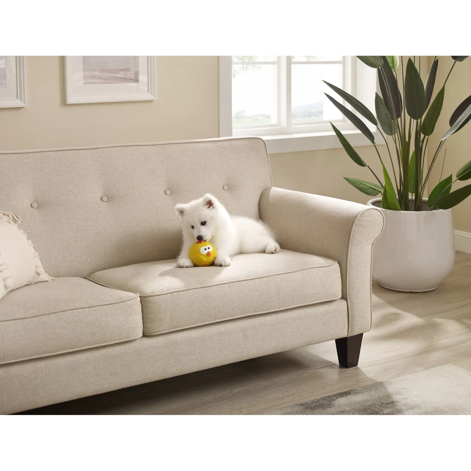 - This toy makes entertaining squeaking sounds for engaging play.