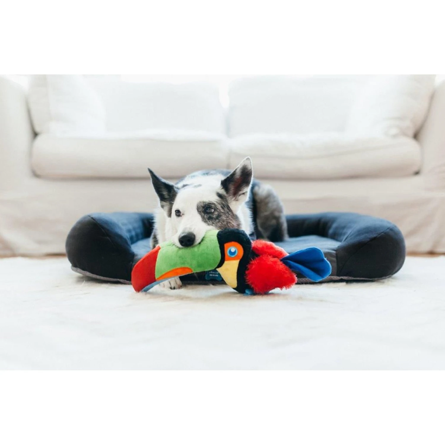P.L.A.Y. Pet Lifestyle And You Fetching Flock Collection Tito The Toucan Plush Squeaky Dog Toy