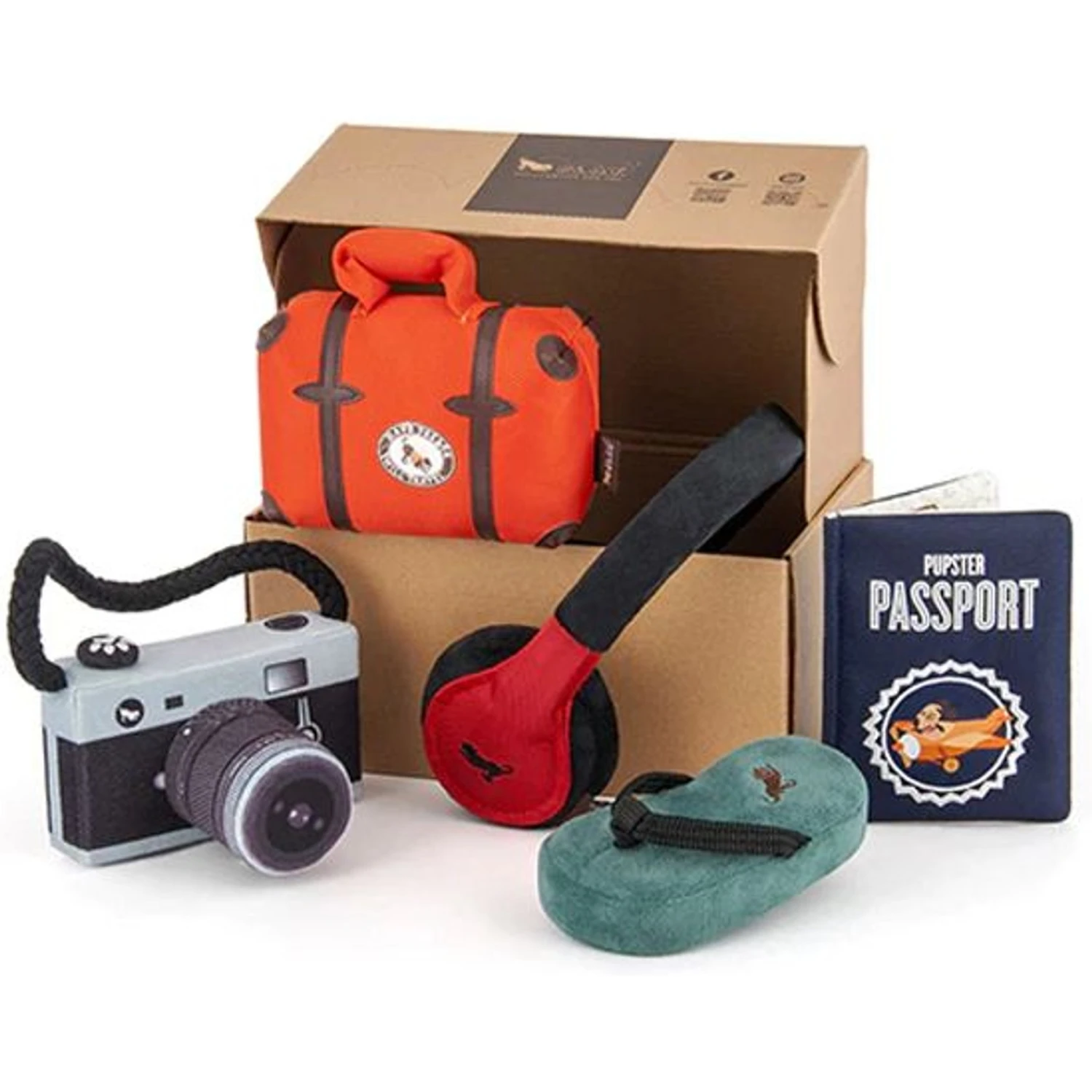 P.L.A.Y. Pet Lifestyle And You Globetrotter Set Plush Squeaky Dog Toy, 5 Count