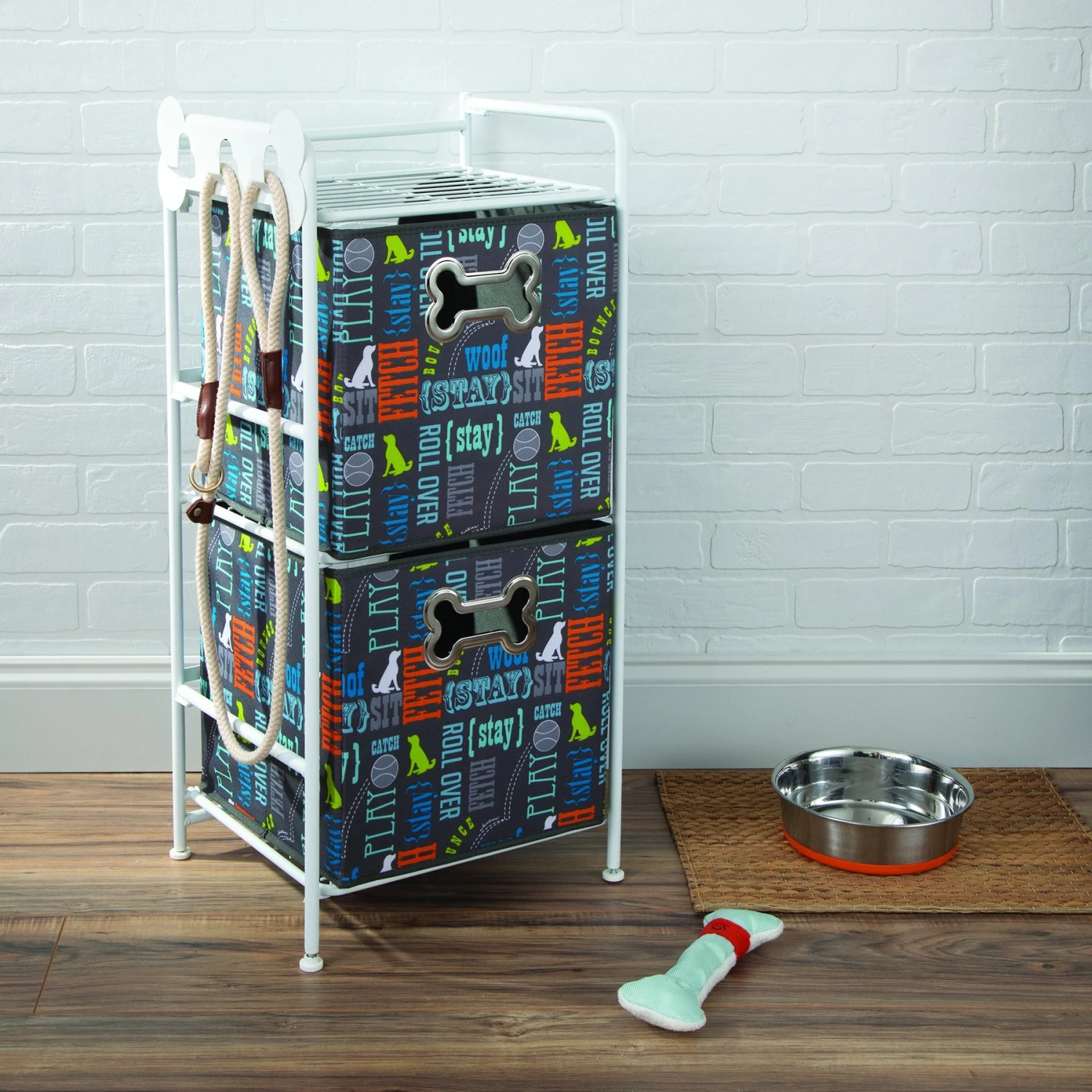 Help keep your pet’s belongings organized and accessible with Paw Prints Pet Station Three Shelf Flip Hook Collapsible Dog Bins! This shelving unit is the paw-fect way to create a storage area for your furry friend where you need it and when you need it. There is no assembly required, the fabric bins are great for storage and the bone shaped handle stores leashes and more!