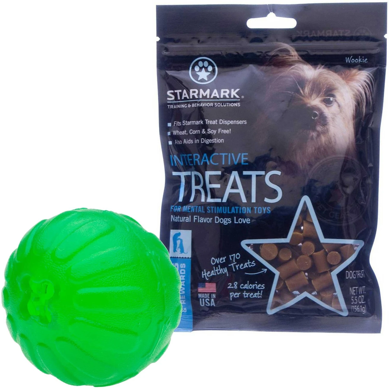 Starmark Treat Dispensing Chew Ball Tough Dog Toy & Starmark Interactive Dog Treats
